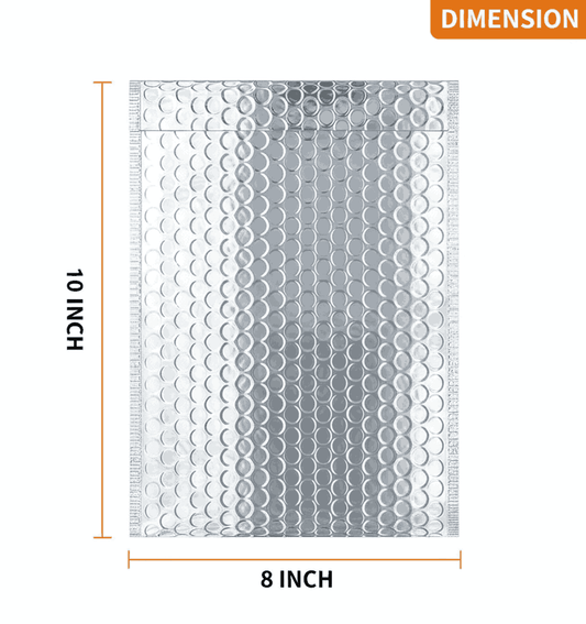 Silver Aluminum Insulated Bubble Pouch-Envelope Bag | Instant hot-cold Food Delivery & Transport Medical Supplies | 10" x 8" Inch (Pack of 10 pcs)